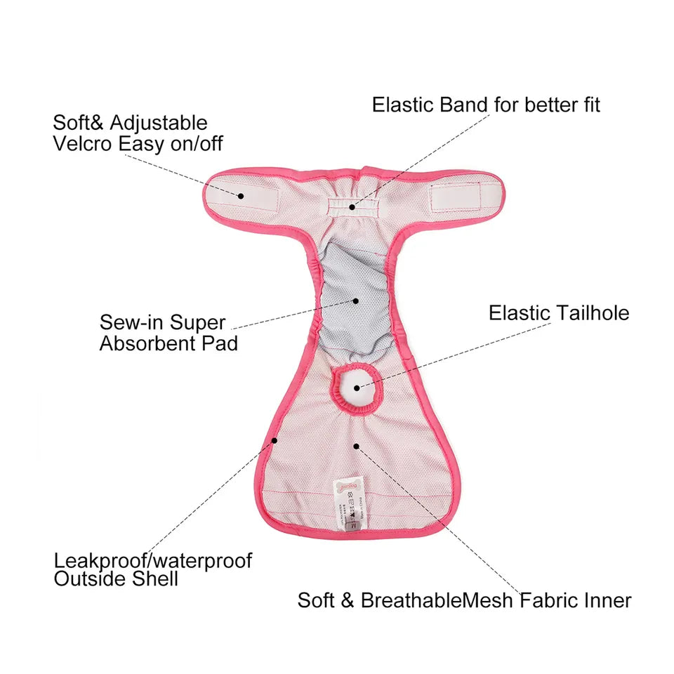Great solution for your female pooch. Whether she in on heat, incontinent due to injury, or simply in her golden years, our diapers give you peace of mind.